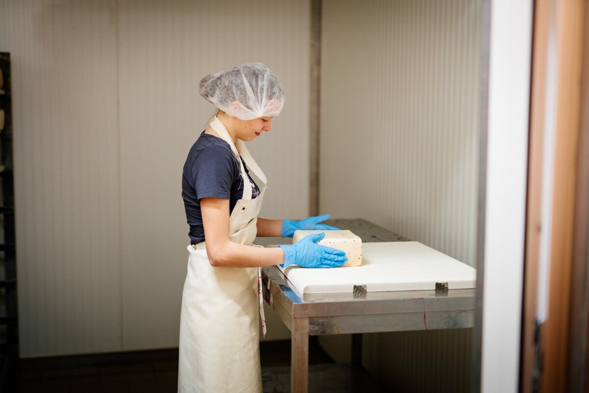 Ziegenmilch oder Schafmilch stand zur Diskussion. Ziegenmilch mochte Manuela jedoch so gar nicht schmecken. So entschieden sich die beiden für Merinoschafe. Ziel war es, deren Fleisch zu verkaufen. Der neue Betriebszweig entwickelte sich aber nur schleppend. Deshalb stellten sie schließlich 80 ostfriesische Milchschafe in ihren Stall. "Pro Woche kamen ca. 1000 Liter Milch zusammen, die wir an zwei Abnehmer verkauft haben." Wie überall bestimmt auch hier die Nachfrage das Angebot. Ein Käsemeister aus Melk gab ihnen den Tipp, eine eigene Käserei zu errichten. Daraufhin begannen die Freudenthalers mit der Produktion von Schafkäse auf ihrem Bauernhof. Aus der Anfangszeit stammt auch der allererste Blauschimmelkäse vom Schaf. "Unsere Produkte kamen gut an", blickt Manuela zurück. Mittlerweile gibt es am Hof eine eigene Käserei mit zwei Reiferäumen, einen Hofladen und Platz für Käseverkostungen. Auch die Sorten werden stetig vielfältiger. Ob mit Chili, Pfeffer, Bockshornklee oder naturbelassen – wer Schafskäse liebt, wird hier fündig. 30 bis 50 Kilo Käse werden pro Woche produziert. Der Schwerpunkt liegt auf unterschiedlichen Sorten von Schnittkäse.